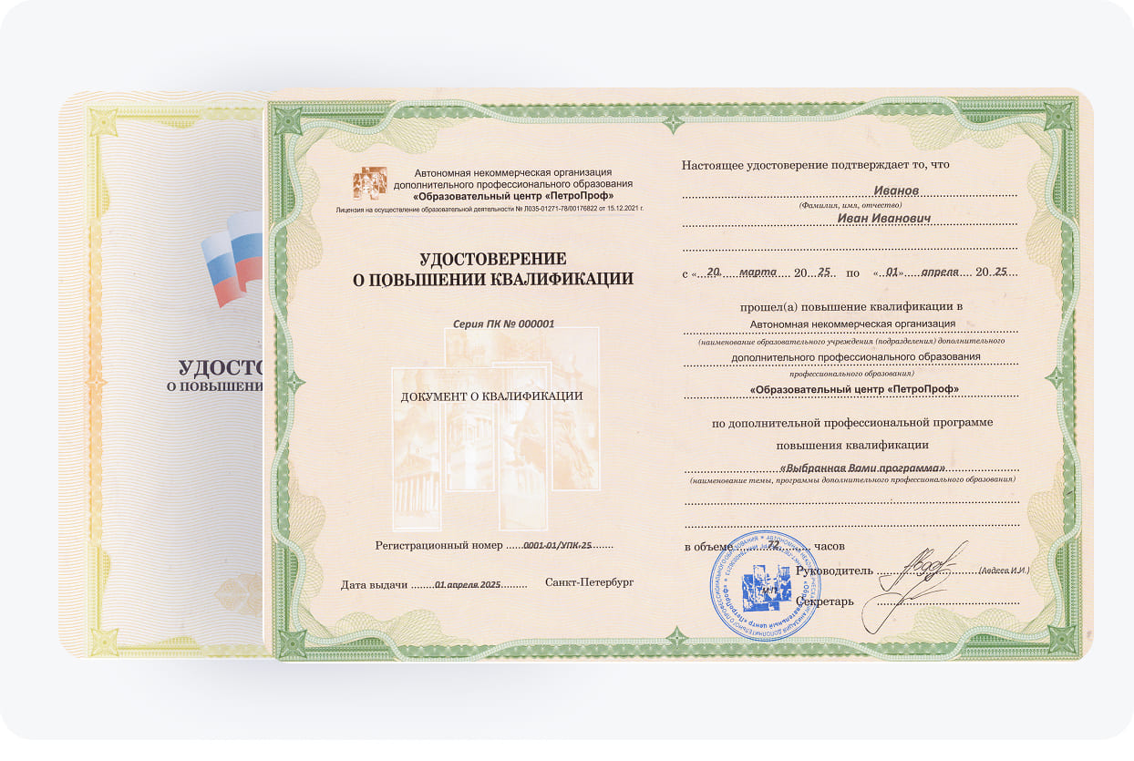 По итогам обучения клиентам учебного центра "ПетроПроф" выдается упк (удостоверение о повышении квалификации).